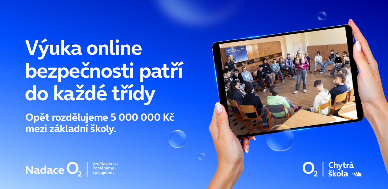 Digitální technologie jsou dnes neoddělitelnou součástí našeho života – učíme se s nimi, komunikujeme i se bavíme. Aby nám technologie opravdu sloužily, musíme se je naučit používat s rozumem. Právě proto Nadace O2 spouští další ročník grantového programu O2 Chytrá škola. Mezi české základní školy rozdělí pět milionů korun na projekty zaměřené na bezpečné a smysluplné využívání technologií. Každá škola může získat až 100 000 Kč na vzdělávací aktivity pro učitele, žáky i rodiče.