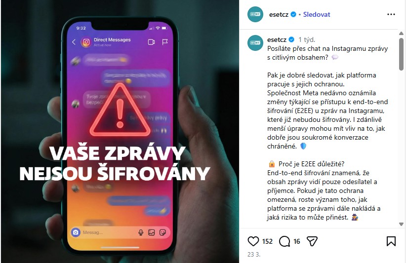 Právě na Instagramu na jeho nedostatky upozorňuje i česká softwarová firma ESET @esetcz